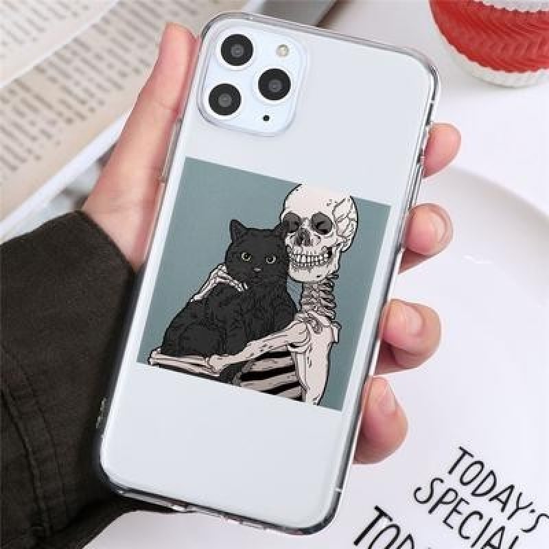 Череп Симпатичный кот Прозрачный чехол для телефона для iPhone 13 12 11 XS Samsung Galaxy A52s A70 A